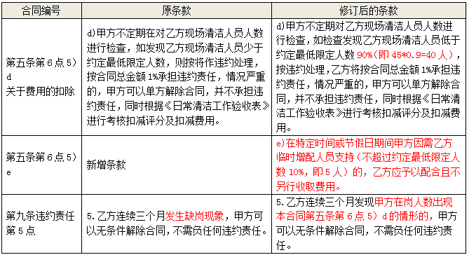 一、 项目基本情况 招标项目编号: 招标项目名称:广州市黄埔大道西666号联通广场服务中心清洁服务 首次公告日期:2022年1月11日 二、更正信息 1、对已挂网的联通广场2022年清洁招标书清洁合同范本条款清洁外包合同的扣罚条款做如下修订:
